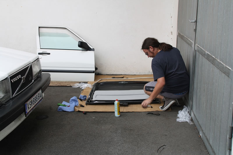 Volvo 740 Dachhimmelrestauration, August 2013 Limo mit Schiebedach - also worst case... Aber wir haben es geschafft! :-) 18 Fotos | © zurück zur Fotoalbum-Liste